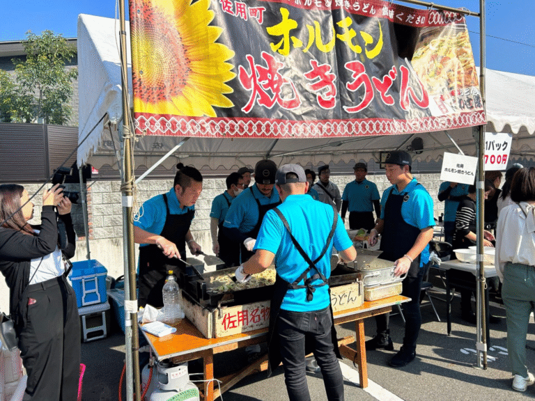 佐用町のご当地グルメ「ホルモン焼きうどん」を、もっと多くの観光客の方に楽しんでもらうため制作がスタートした「ホルモンうどんマップ」。2025年の刷新時には、紙媒体に加えてweb媒体も制作し、部員全員で町内のホルモンうどん店・関連店を取材・記事作成を実施しました。