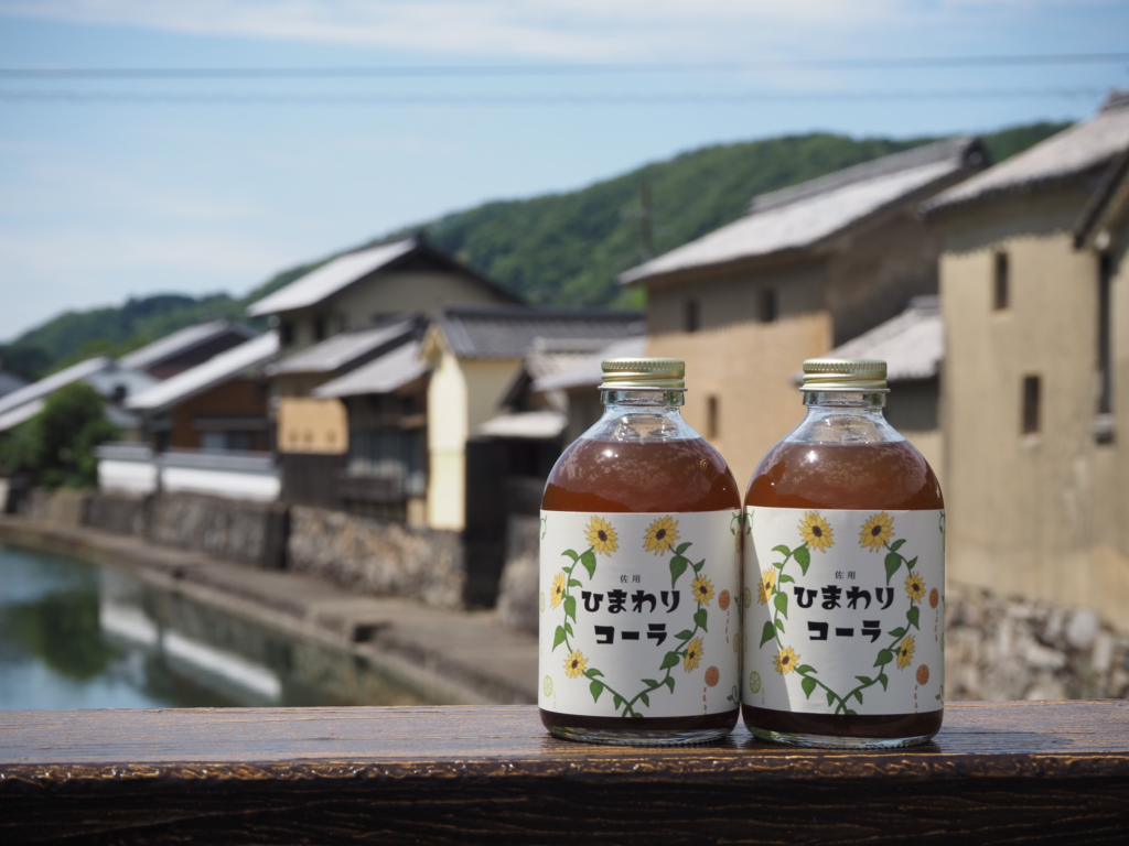 佐用町の象徴である「ひまわり」を活用し、ひまわりの種を原料の一部に使用したクラフトコーラ「ひまわりコーラ」を開発・販売しています。